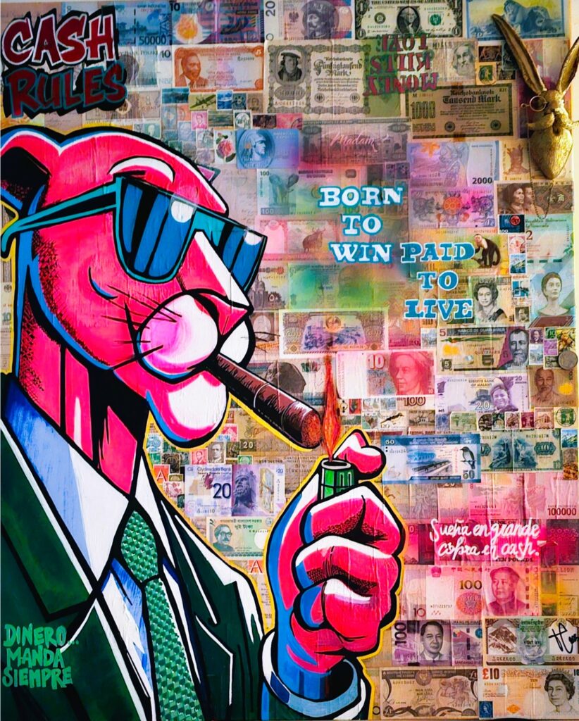 POP ART THIS IS ME (160 x 120 x 3 cm, 2023) $$$ (120 x 100 x 3 cm, 2023, SOLD) EL PATRÓN DE ROSA ( 100 x 80 x 3 cm, 2025) THE SOUND OF COLOUR ( 100 x 80 x 3 cm, 2025)